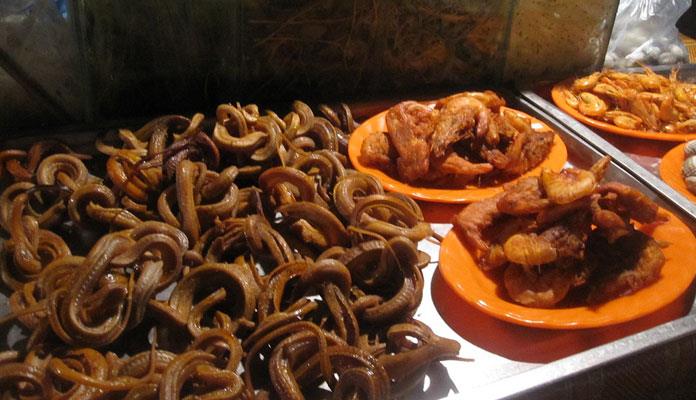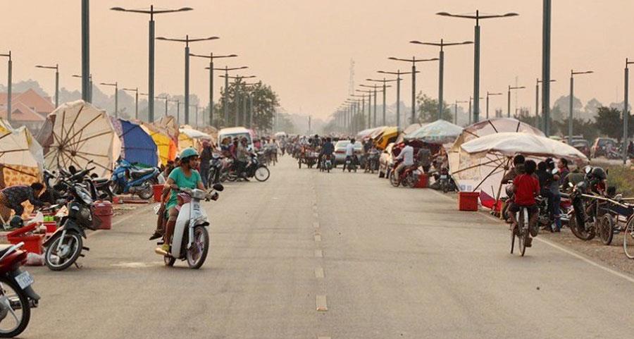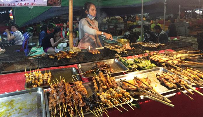 60 Road Street located outside from Siem Reap city. This places similar to Pub-Street but this place different because 60 Road Street not the place for tourists at all as this place local people go sightseeing in late evening and night to get the fresh air outside from city and It’s a glorious evening street market lining both sides of the road. It runs from evening around 6:00pm (maybe earlier) until well in the evening. The road starts with small fruit stalls with piles of fruit laying on plastic on the ground. Maybe some of the more exotic fruits (such as jack fruit) and lots of selling fried snakes, crickets, beetles, spiders, and other insects (popular for local people buy and eat) on trays balanced on the top of boxes, bins, anything really. But most is just at ground level.